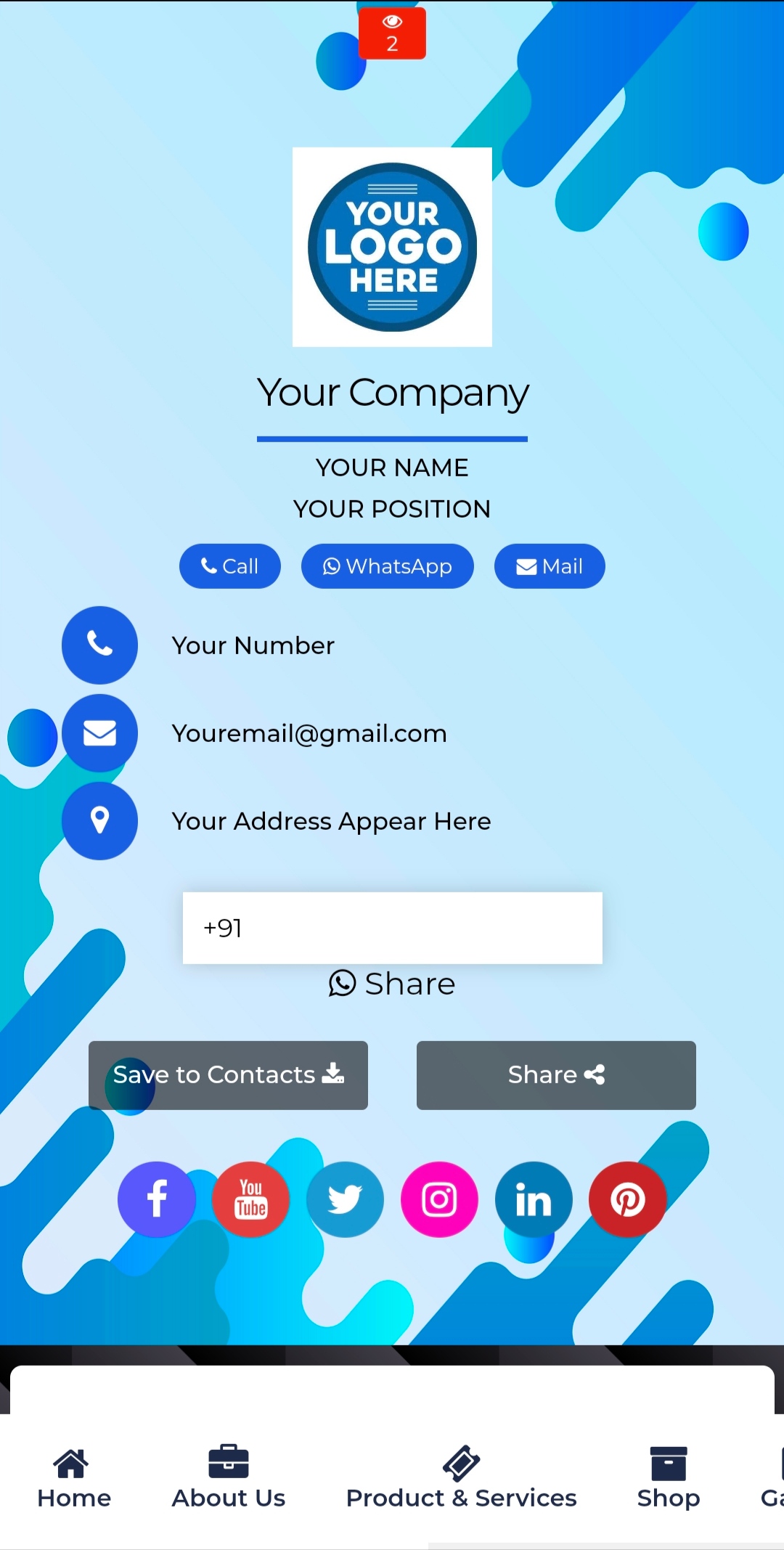 Design your digital visiting card in 2 minutes - it's easy, elegant and free. This Online Vcard is always in your pocket, never tears and never runs out. Your Digital Visiting Card can be easily updated with our user-friendly dashboard, so you won't need to re-print a business card again.
